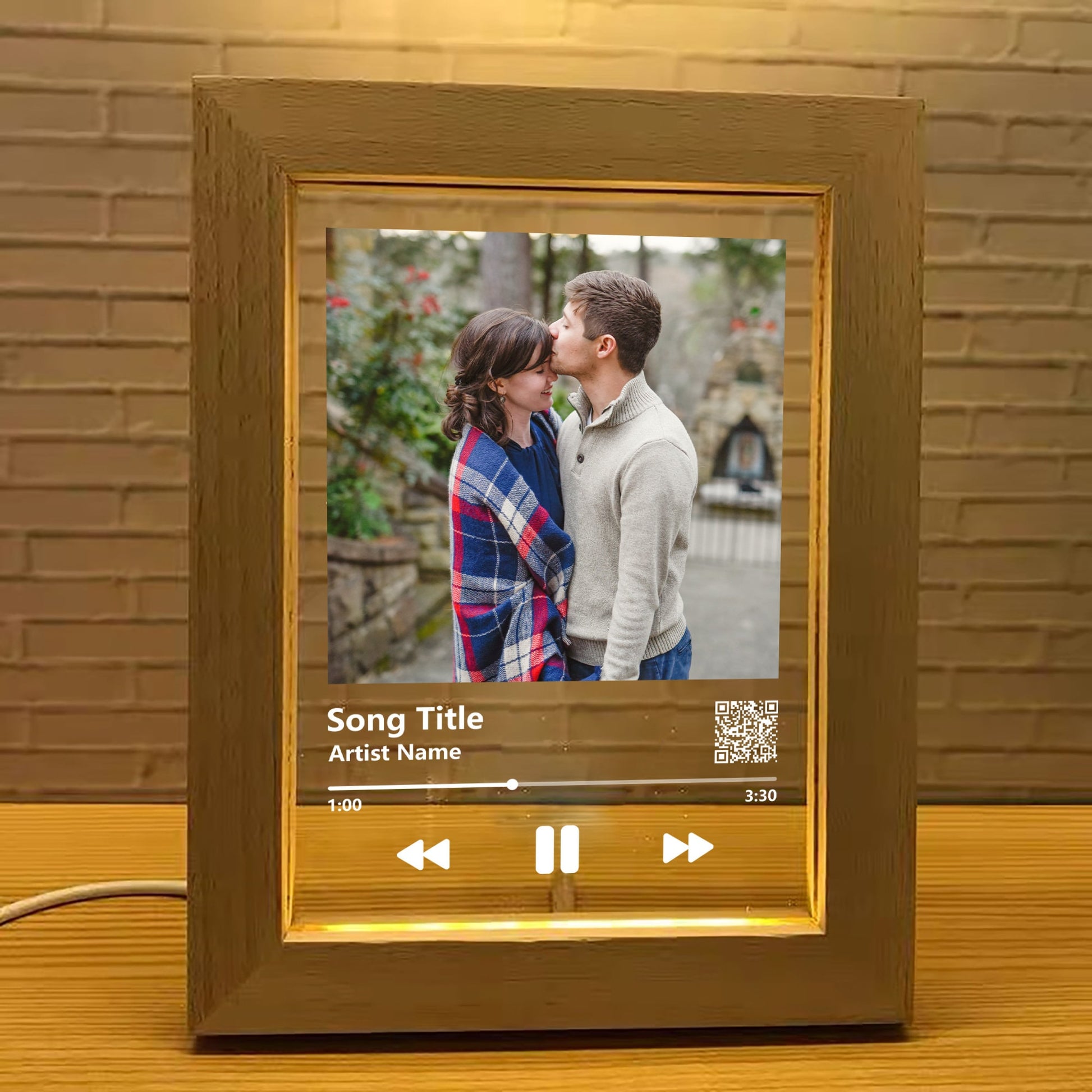 Offrez une expérience unique avec notre Lampe LED Photo dans un Cadre en Bois avec code-barres Spotify personnalisé.