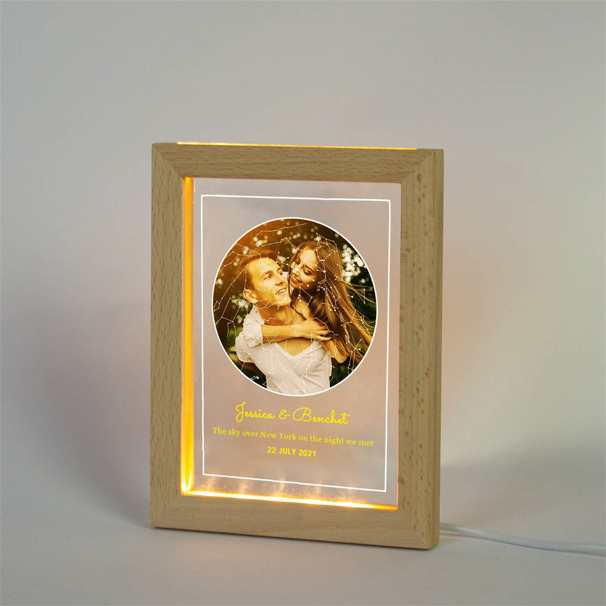 Cadre en Bois avec Lampe LED Personnalisée - Illuminez Votre Espace avec Vos Souvenirs Préférés! 🌟🎵