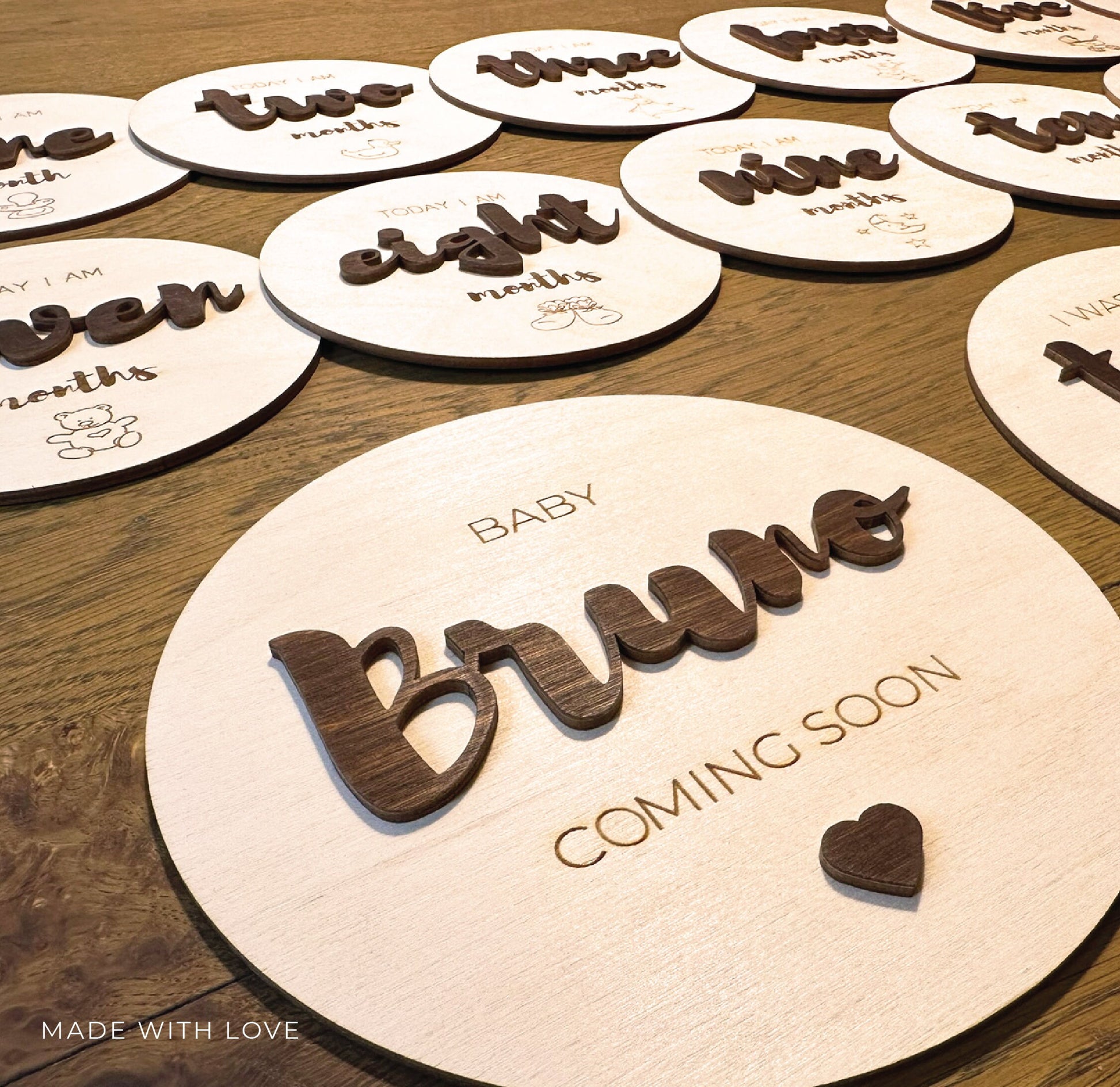 Capturez chaque moment précieux de la première année de votre bébé avec nos Disques 3D en Bois des Jalons Mensuels. Élégamment gravés et fabriqués en bois naturel, ces marqueurs personnalisés sont parfaits pour immortaliser l'évolution de votre enfant à travers des photos inoubliables.