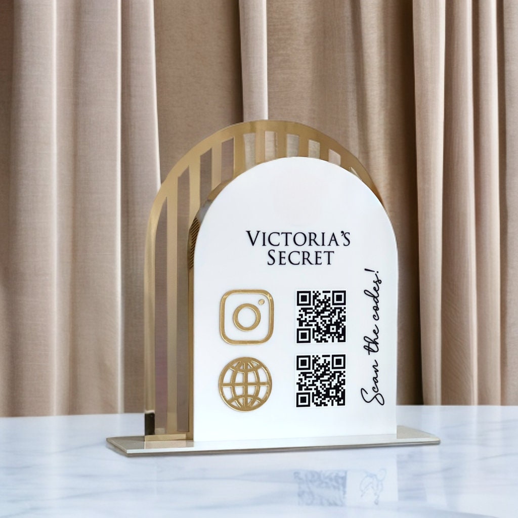 Enseigne de Code QR Personnalisée en Plexiglas Doré et Blanc
