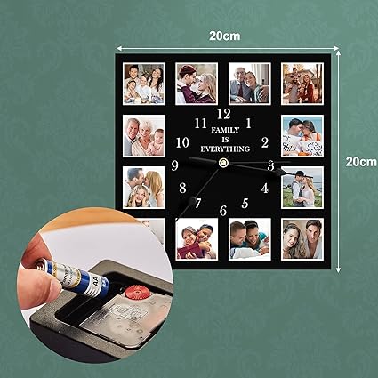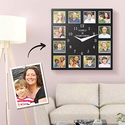 "Découvrez notre horloge personnalisée avec photos de qualité exceptionnelle. Fabriquée en bois MDF et dotée d'une impression UV haute qualité, cette horloge ajoute une touche personnelle à n'importe quelle pièce. Disponible en trois formats (30 cm, 40 cm, 50 cm), elle est le cadeau idéal pour vos proches ou un ajout élégant à votre décoration intérieure."