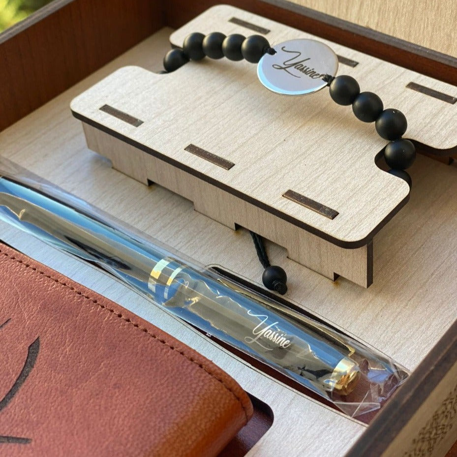 Unique selling point : Offrez un cadeau élégant et pratique à vos proches avec le RALF Pack. Ce pack contient un portefeuille, un stylo et un bracelet, tous personnalisables selon vos préférences.